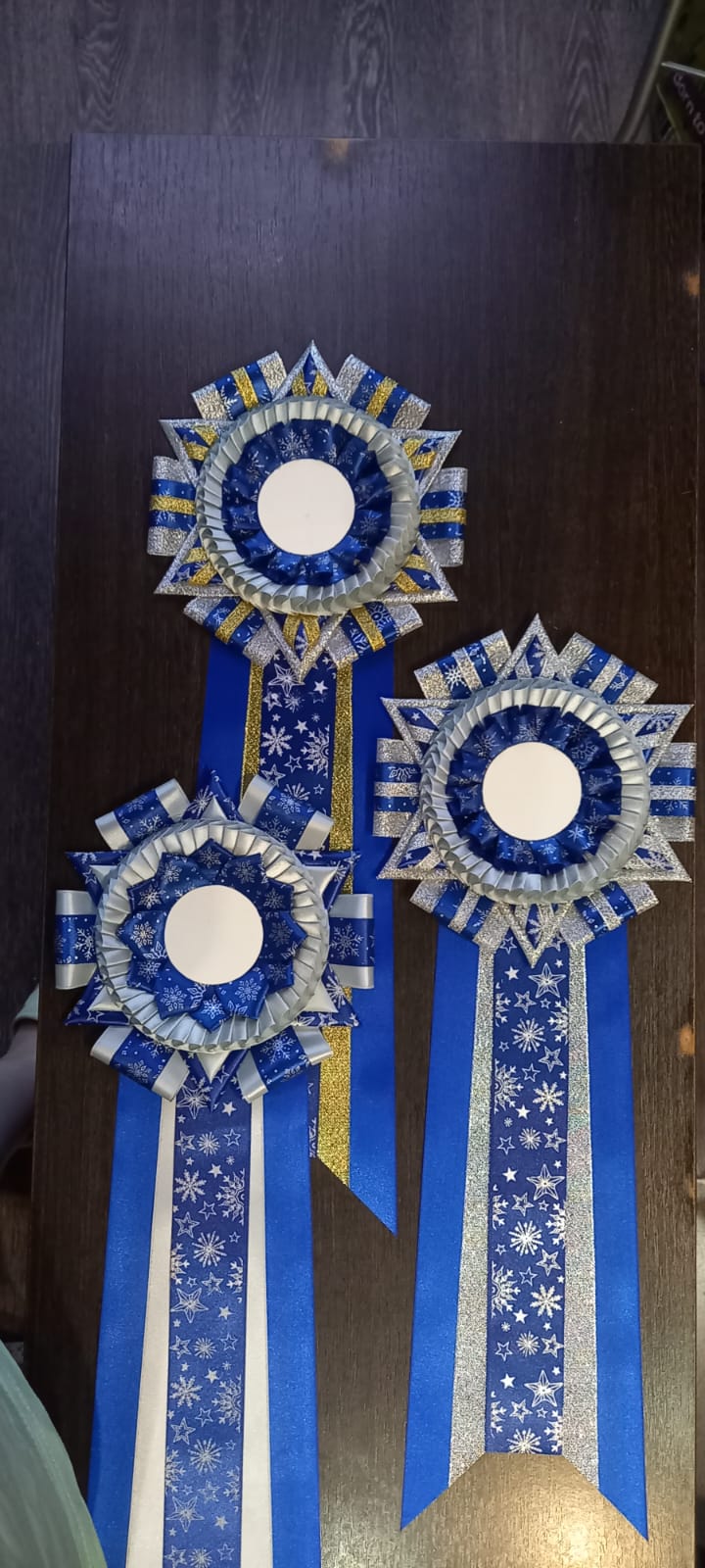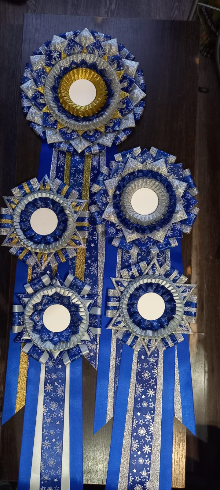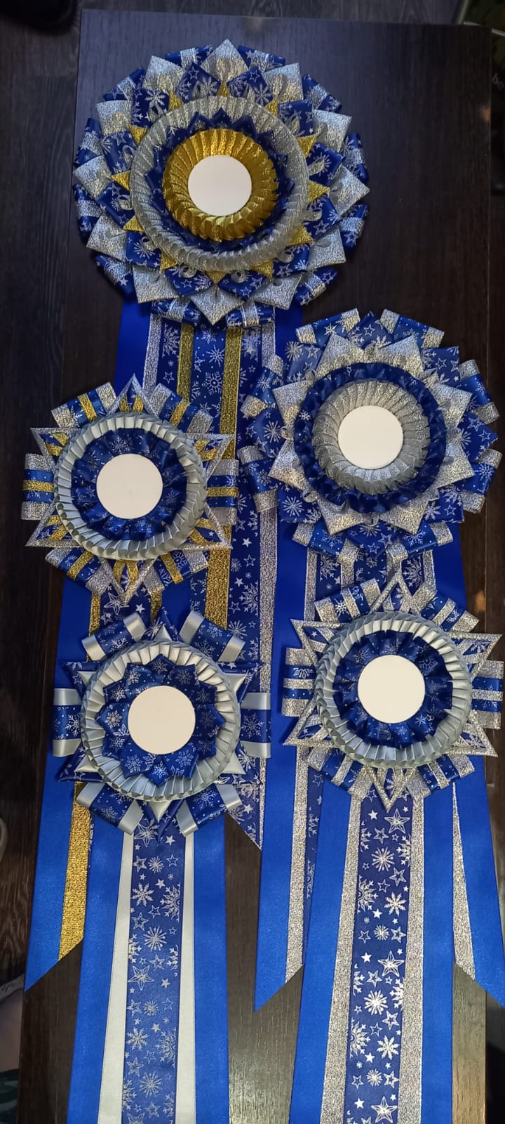 "Зимняя" коллекция Набор наградных розеток на «Зимнюю» выставку собак в г. Якутск. Все розетки изготовлены в одной цветовой гамме с использованием лент с принтом (рисунком) и металлизированной ленты «серебро». Вам понравился материал? 567 Комментарии Написать комментарий Нет комментариев. Ваш будет первым! Ваше имя E-mail для ответов Отправить Отменить Предпросмотр