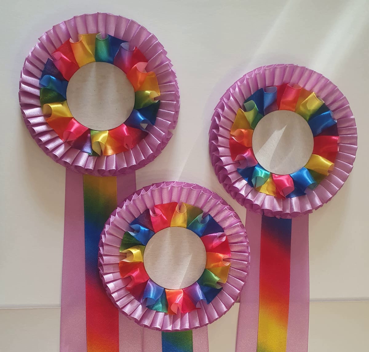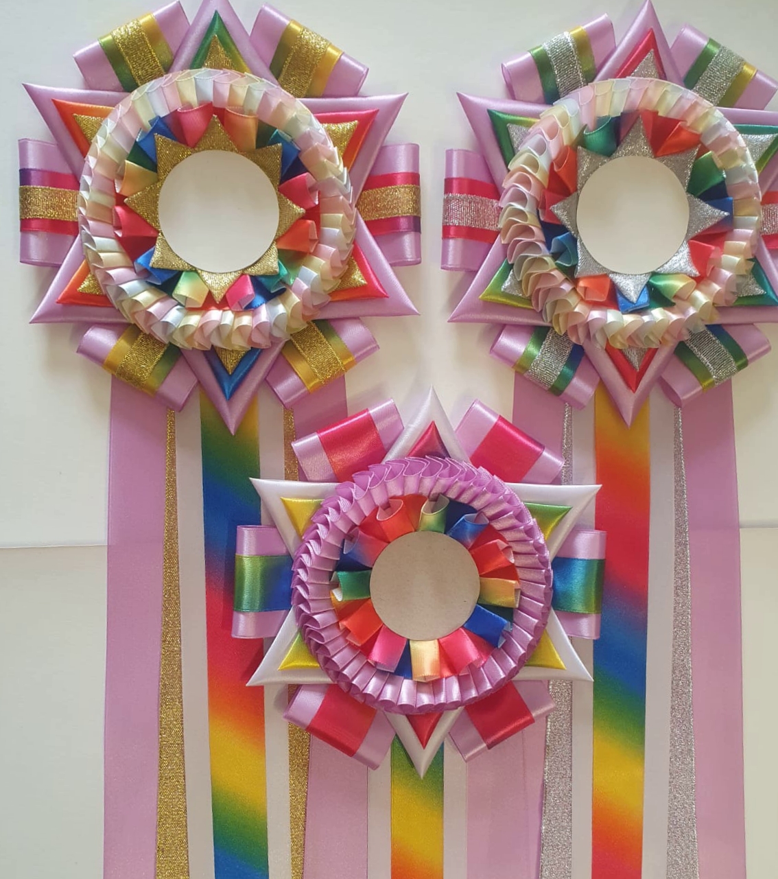 Наградные розетки "Радуга" На выставку собак был заказан набор наградных розеток в весенней окраске. Все розетки выполнены с использованием атласной ленты «Радуга». Представляем данную коллекцию. Выполняем заказы по Вашим пожеланиям Вам понравился материал? 728 Комментарии Написать комментарий Нет комментариев. Ваш будет первым! Ваше имя E-mail для ответов Отправить Отменить Предпросмотр
